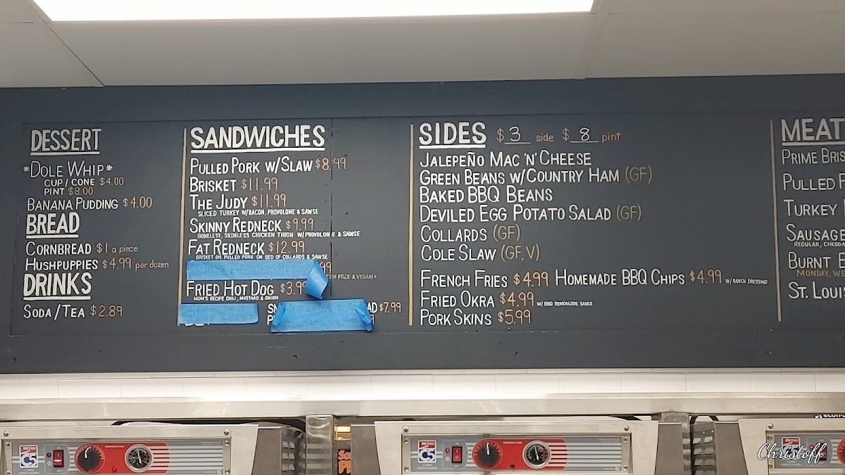 3/4 lb. average of slow cherry and hickory wood smoked meat of your choice served with 2 sides, cornbread and sauce.